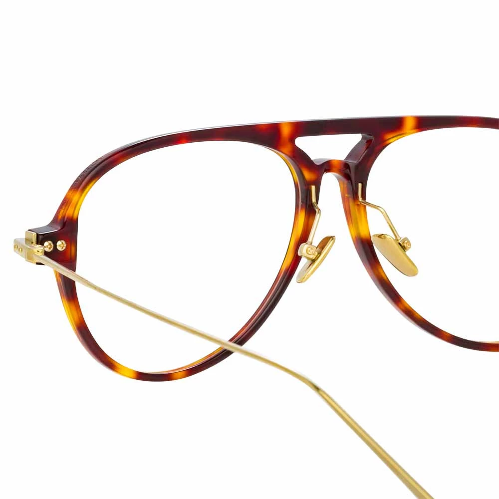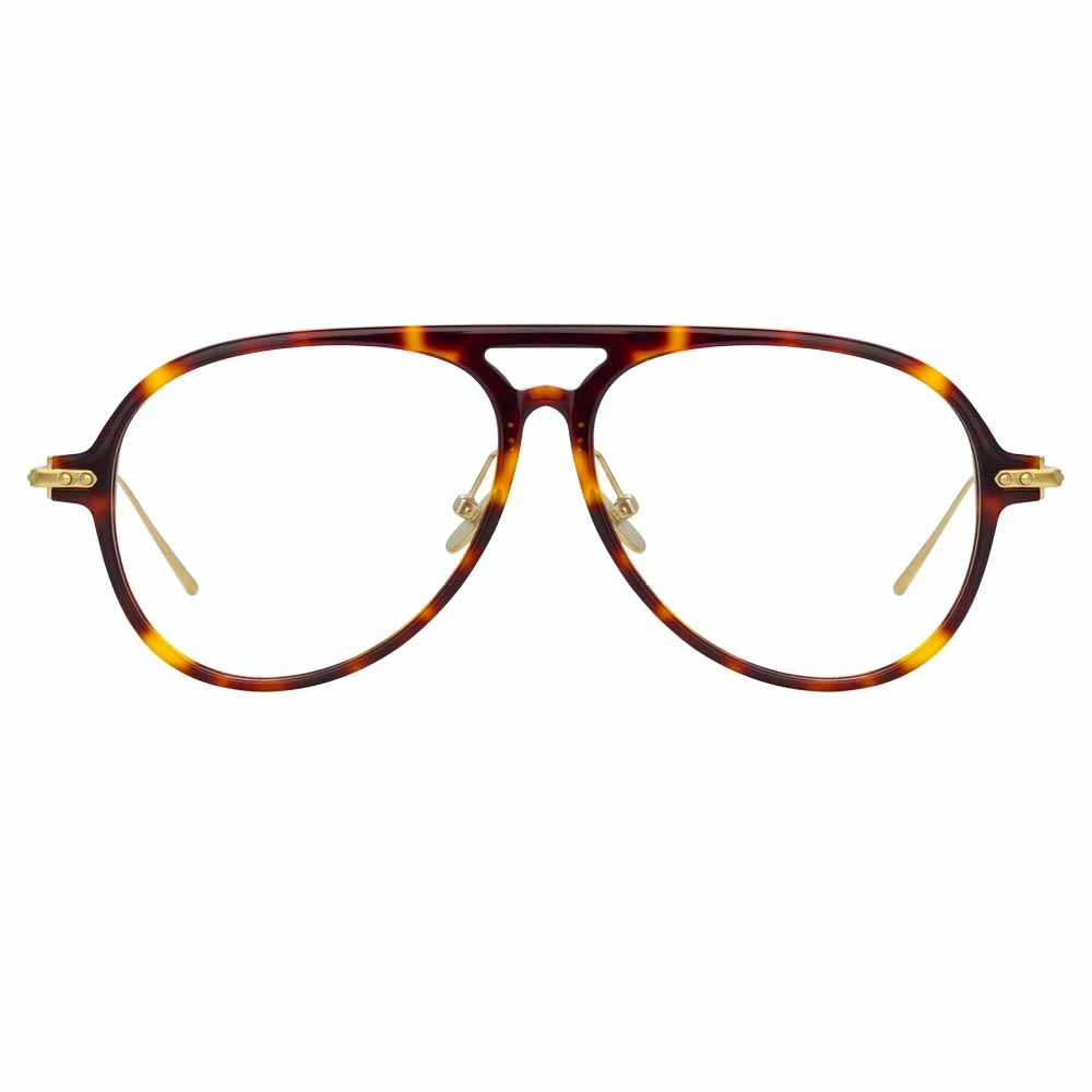 A bold yet refined take on the aviator, these men’s optical glasses from the Linda Farrow LINEAR collection are crafted from tortoiseshell Italian hand polished acetate and ultra lightweight 18-22 carat luna gold-plated titanium.
