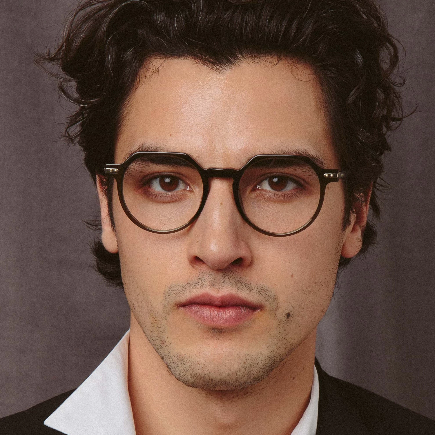 Inspired by architectural lines the Griffin optical frame from the LINDA FARROW Linear collection features a striking angular brow. The oval glasses are hewn from highly polished recycled black acetate with sculpted nose pads. The slim acetate temple is joined with a 22 carat light gold custom engineered titanium hinge with hidden ‘LF’ logo on the inside. Discreet logo detailing at the brow and a gold linear line running along the side of the rim complete the frame. Also available in Asian fitting.