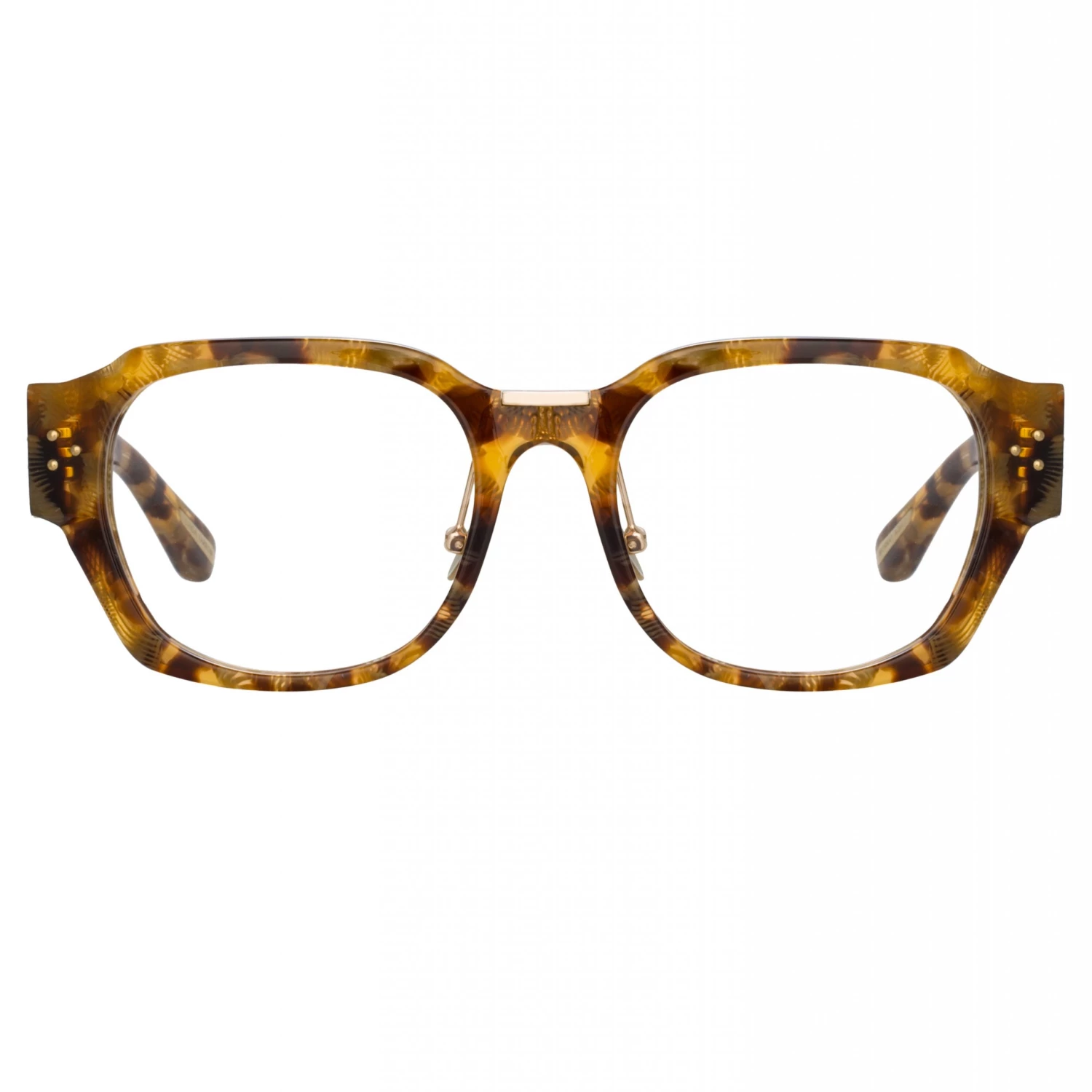 An experimentation of angles and facets the Ramon optical glasses from the LINDA FARROW collection is our take on a classic acetate frame. The tobacco tortoise shell acetate frame is beveled for intriguing texture and elevated with delicate 22 carat light gold titanium detailing at the bridge. Adjustable titanium nose pads allow a tailored fit for comfort. The frames are completed with discreet logo detailing inset into the temple tip.
