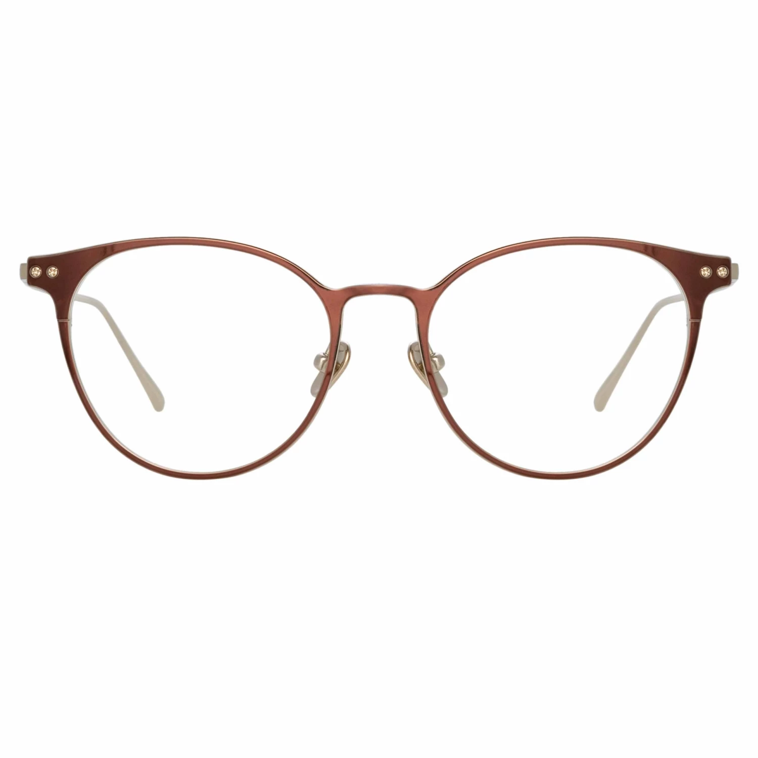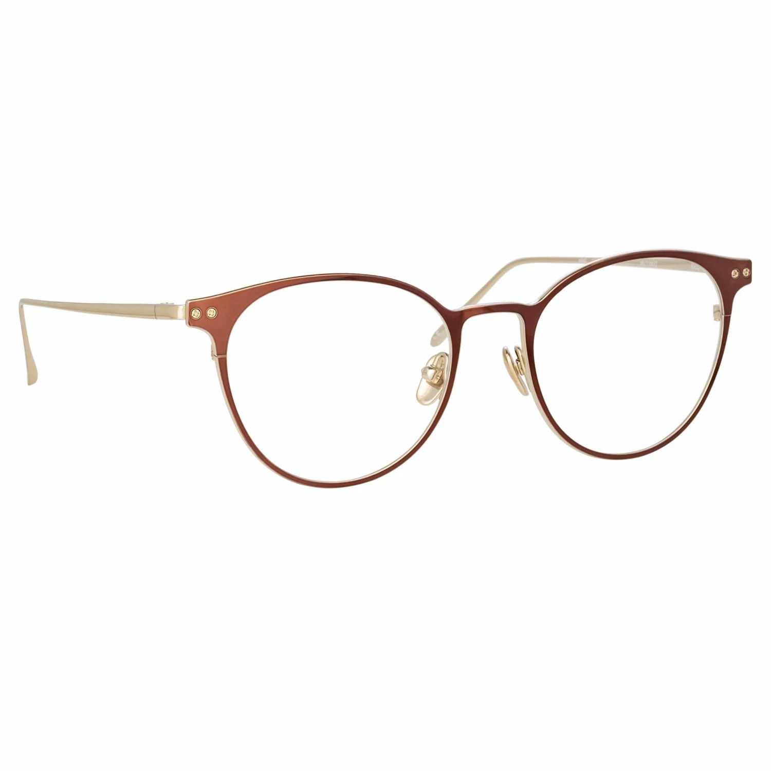LINDA FARROW (U.K.) Ricci Cat Eye Optical Frame In Light Gold And Brown