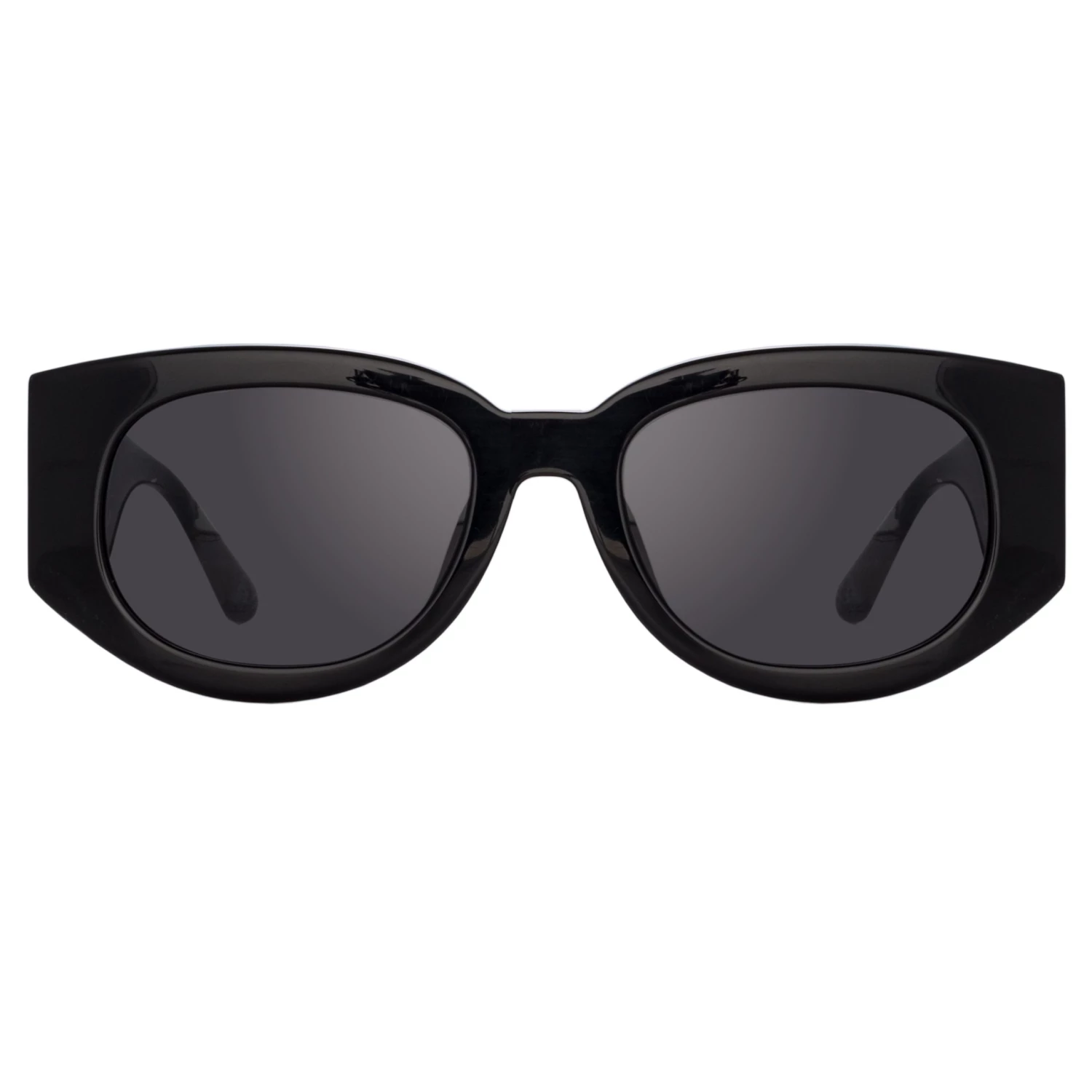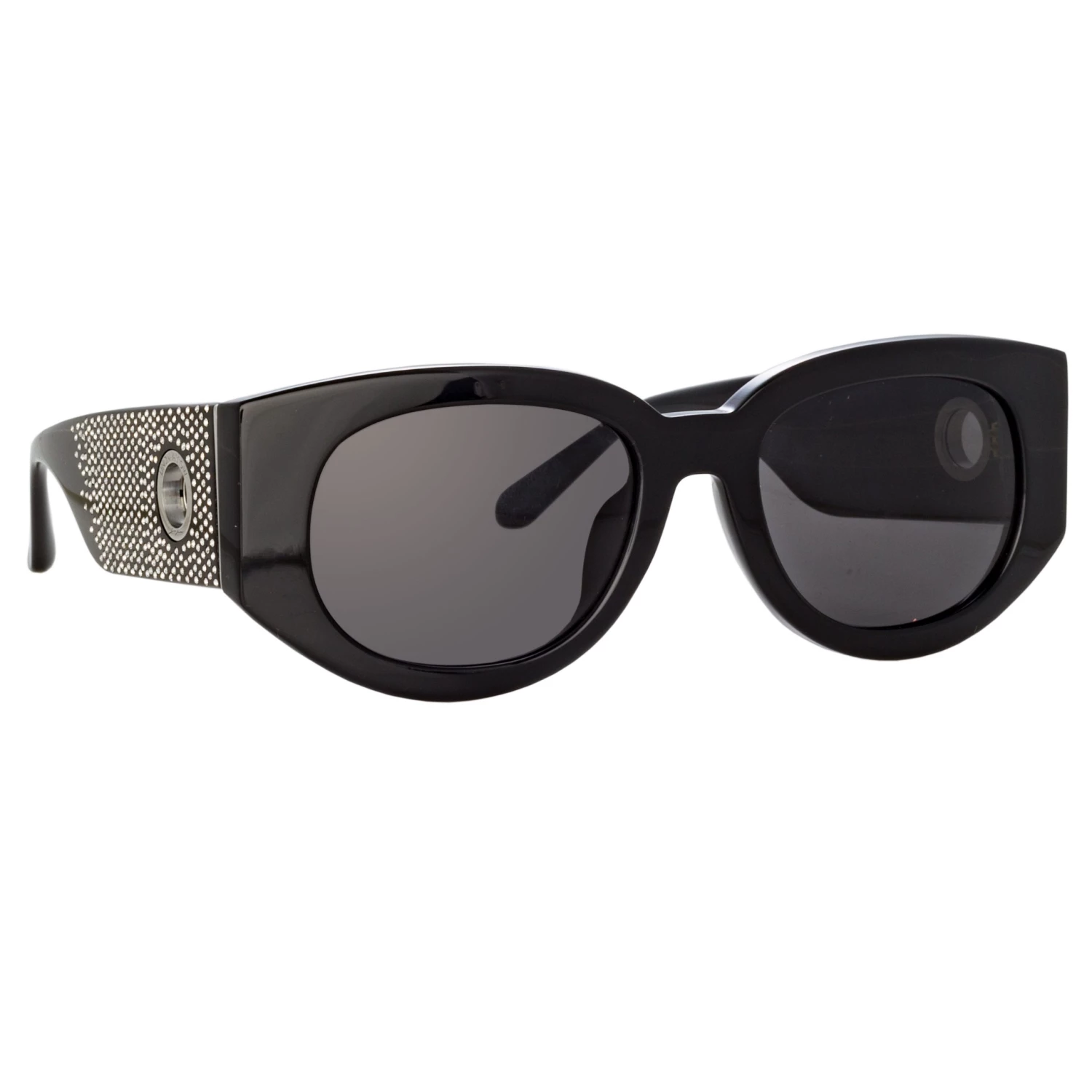 LINDA FARROW (U.K.) Virtual Try On Debbie D-Frame Sunglasses In Black And Crystal Temples