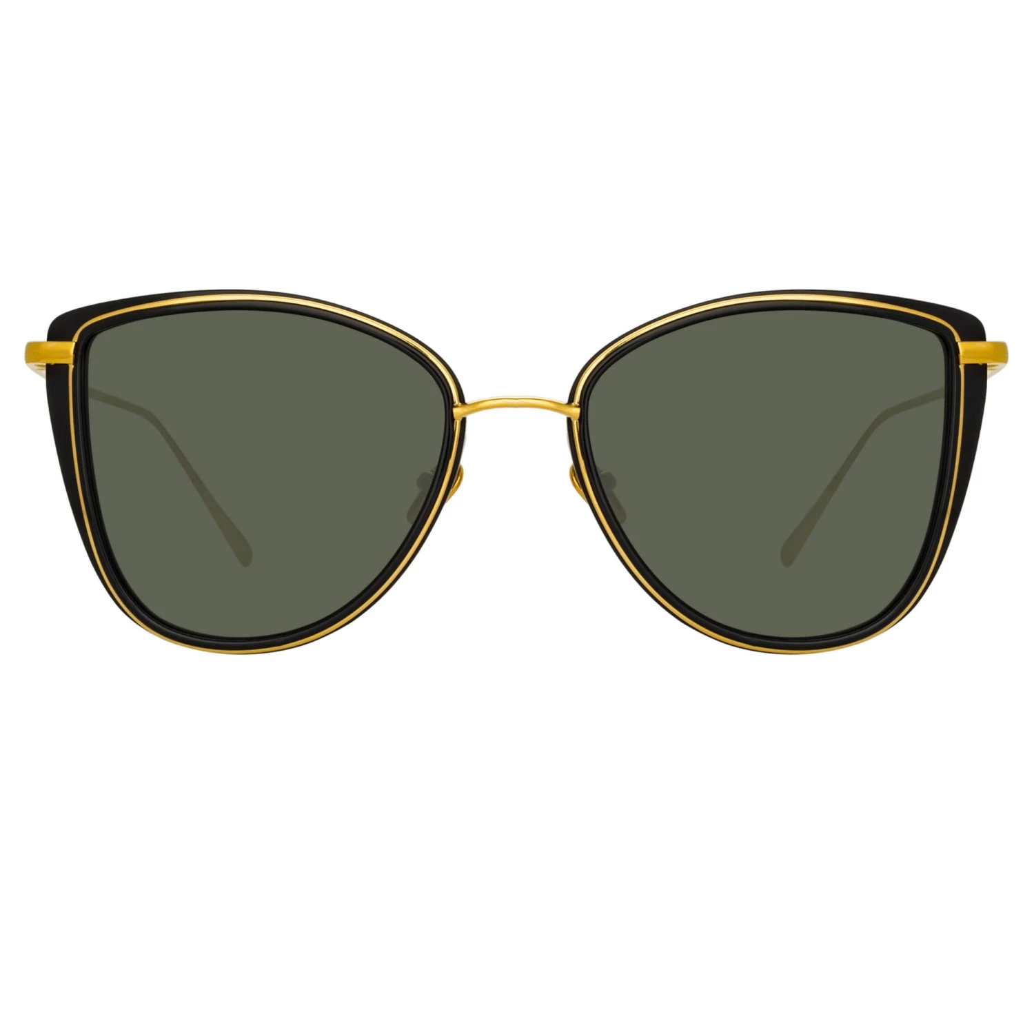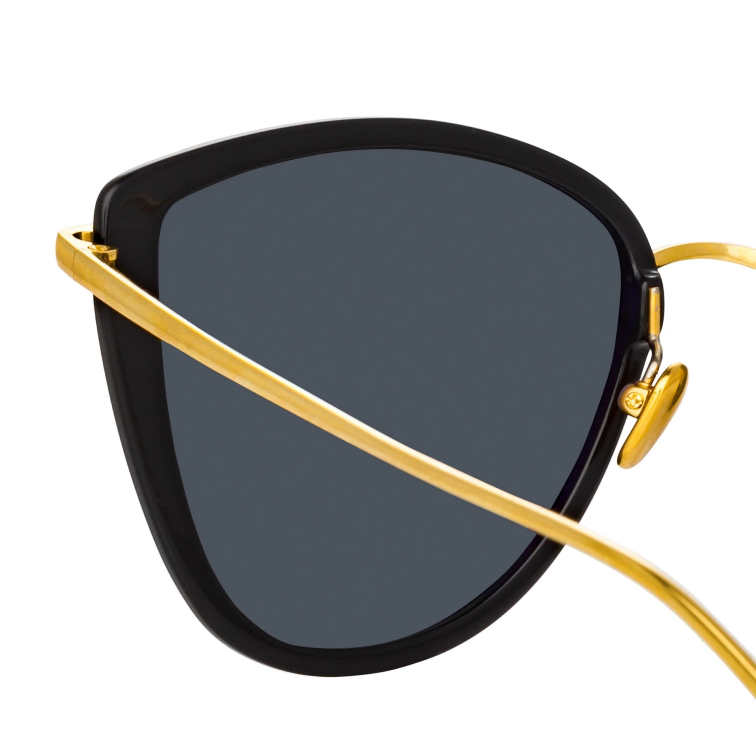 LINDA FARROW UK Liza Cat Eye Sunglasses In Black And Yellow Gold Women’s