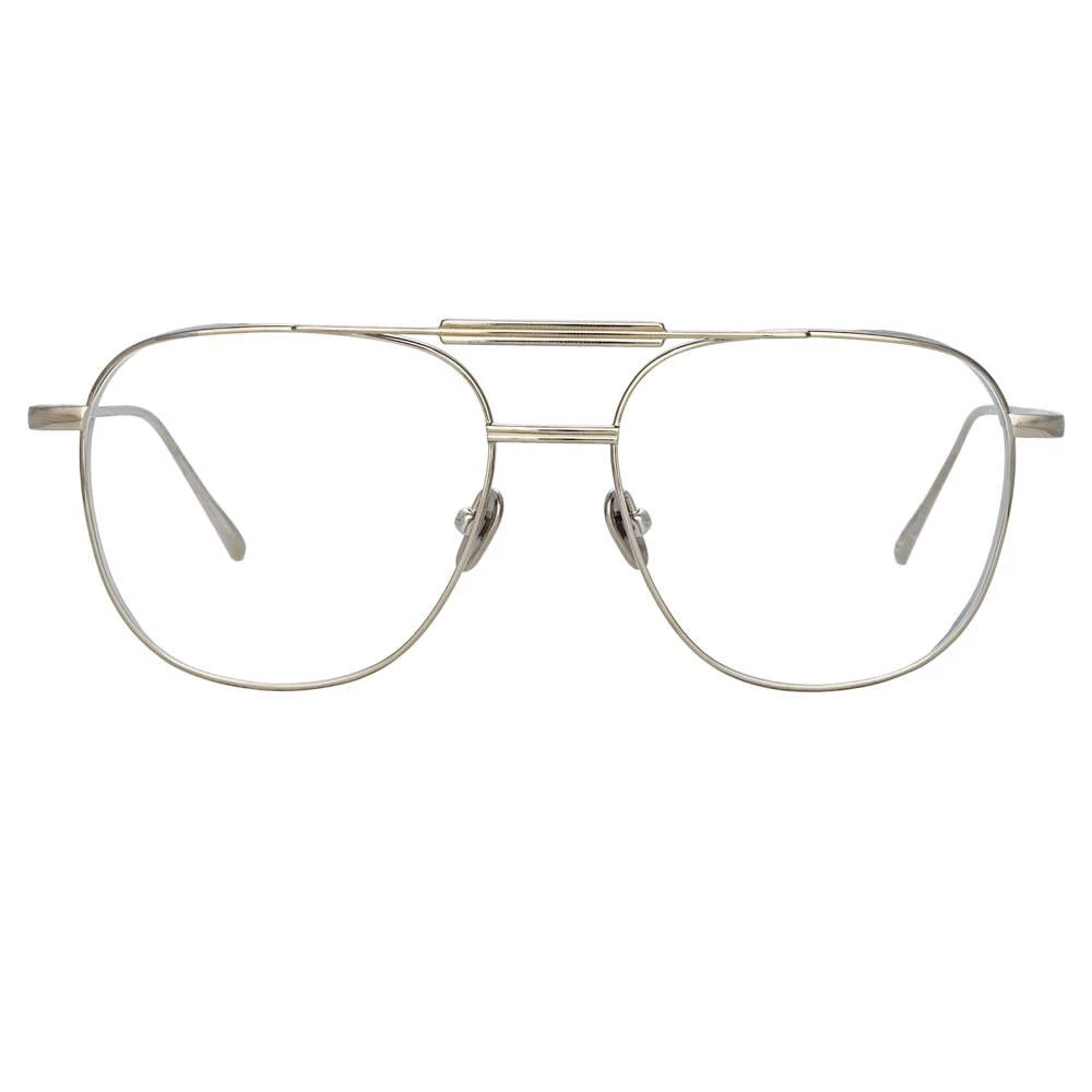 Be the first to review “Linda Farrow Wilder Aviator Optical Frame In White Gold” Cancel reply