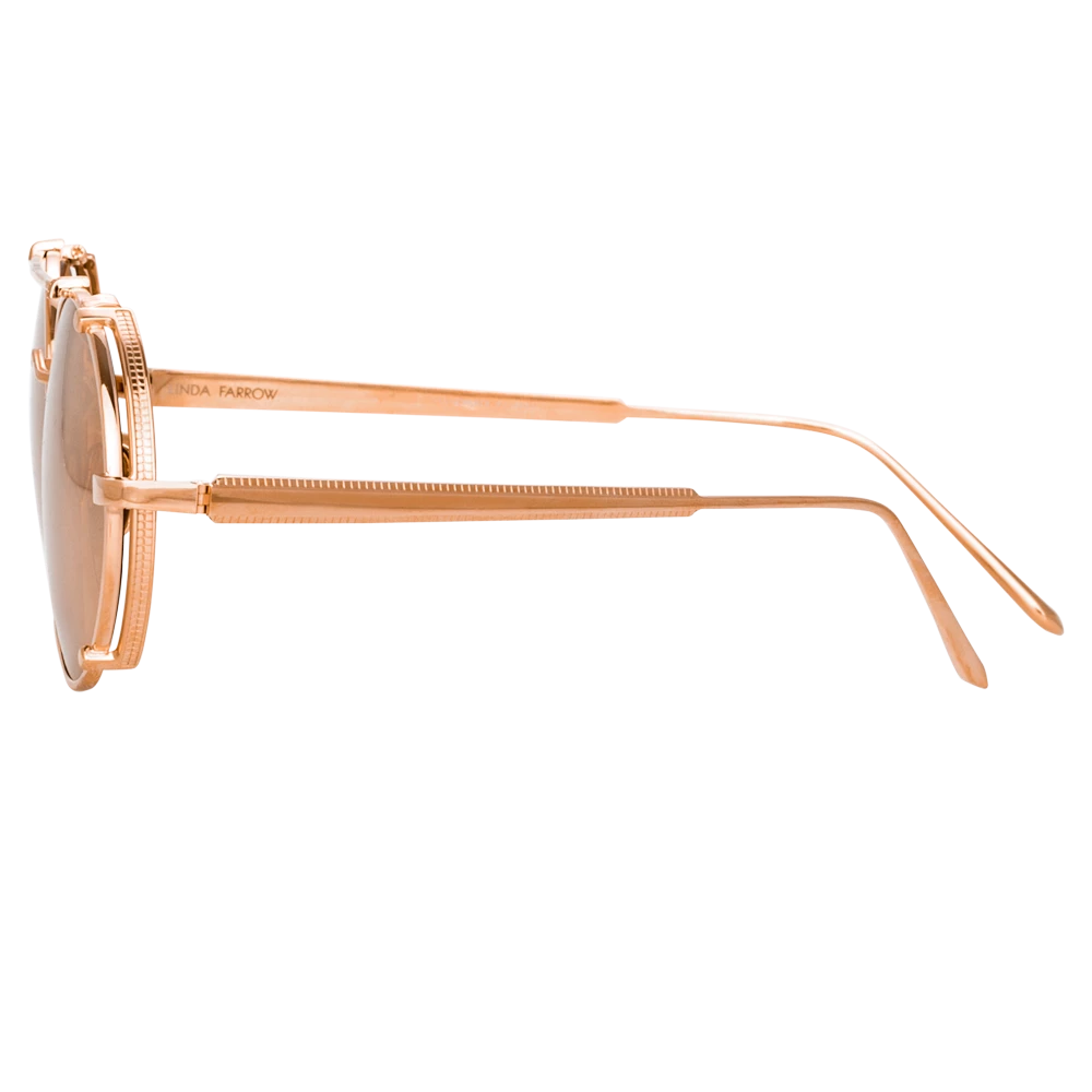 Sculpted from pure Japanese titanium these oval sunglasses from the LINDA FARROW collection balance sleekness with bold industrial detailing. Meticulously etched side shields arecustom engineered to complement the 18 carat rose gold plated frame. The Jimi is fitted with 18 carat rose gold plated lenses, the precious metal lending the surface a lustrous mirror finish. The style is finished with adjustable nose pads for a tailored fit.