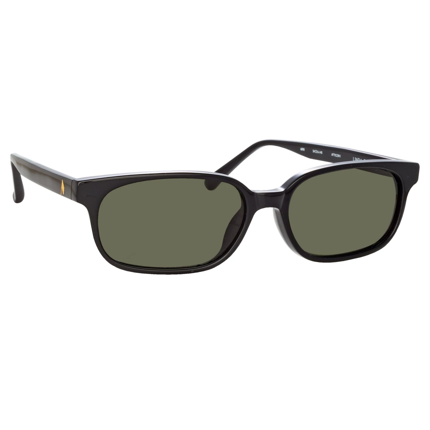 A slimmer take on the classic D-frame shape the Gigi emanate effortless cool. The rectangular sunlasses from our collaboration with The Attico are formed from recyled black acetate with sculpted nose pads and temple tips for comfort. Fitted with solid green lenses and completed with gold ‘A’ branding on the temple.