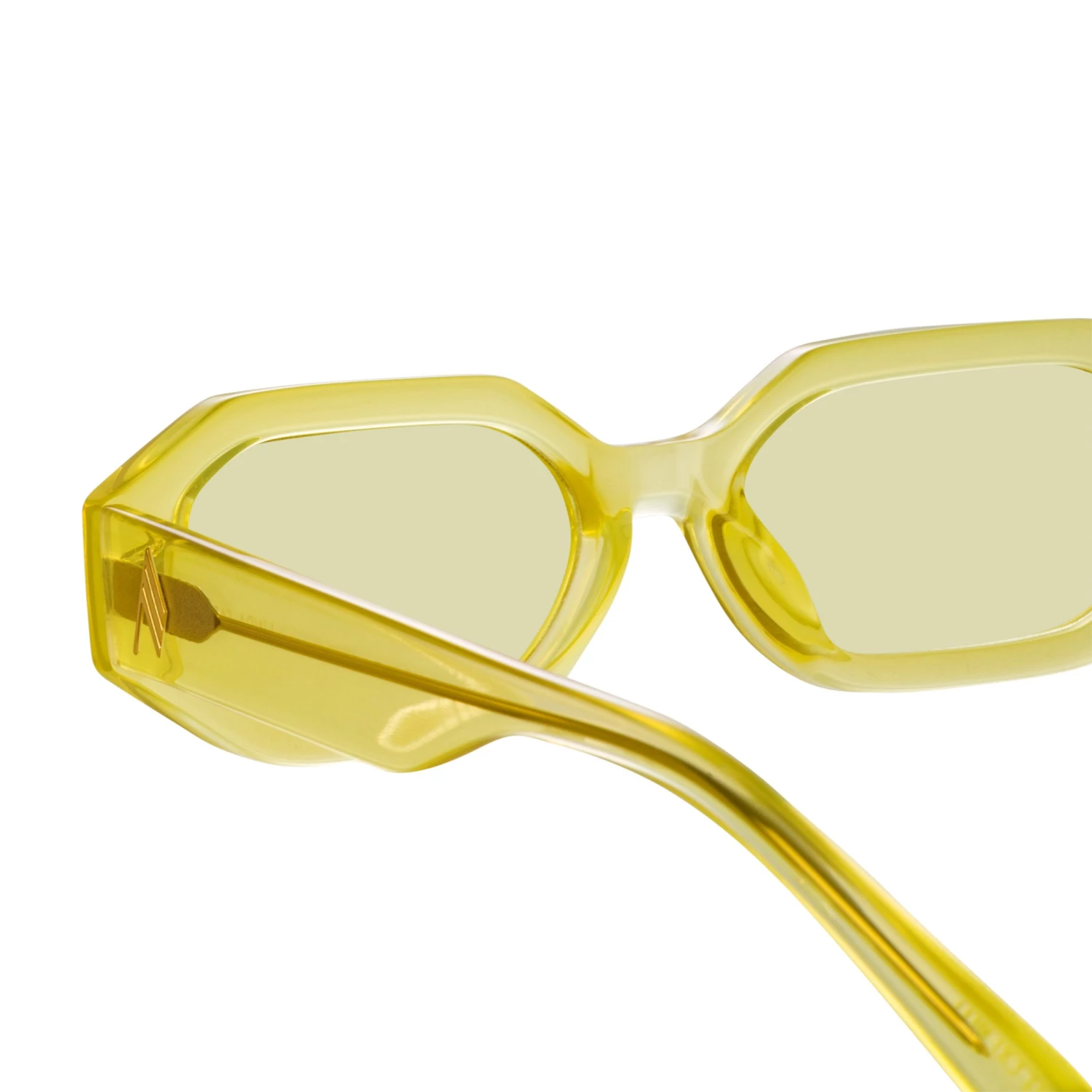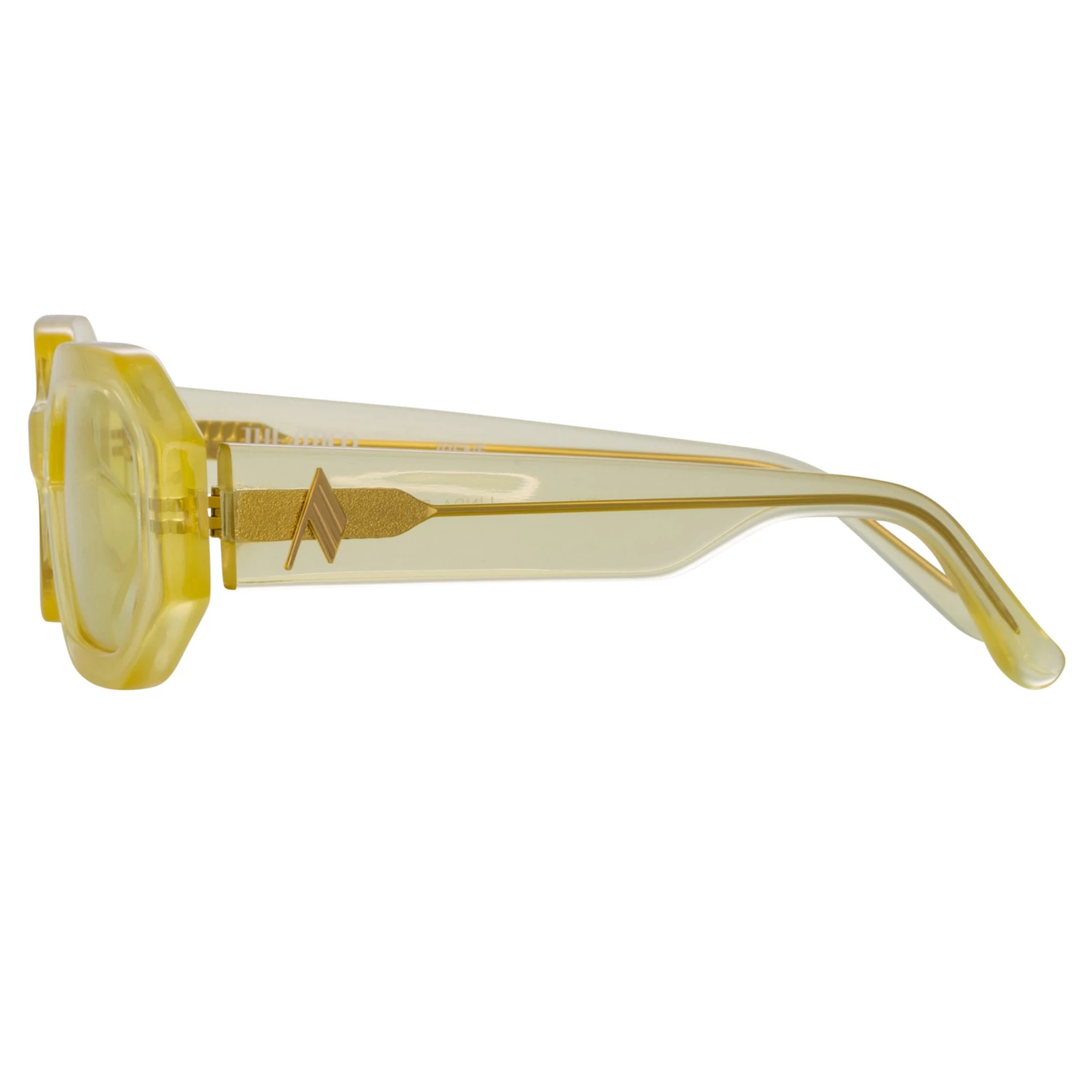 A core silhouette from our collaboration with The Attico, the Irene sunglasses are introduced in new seasonal shades. Sculpted from a sunny yellow acetate the angular hexagonal frames are highly polished to bring softness to their edge. The temples bear a yellow monogram logo and the style is completed with tonal yellow lenses for 100% UV protection.