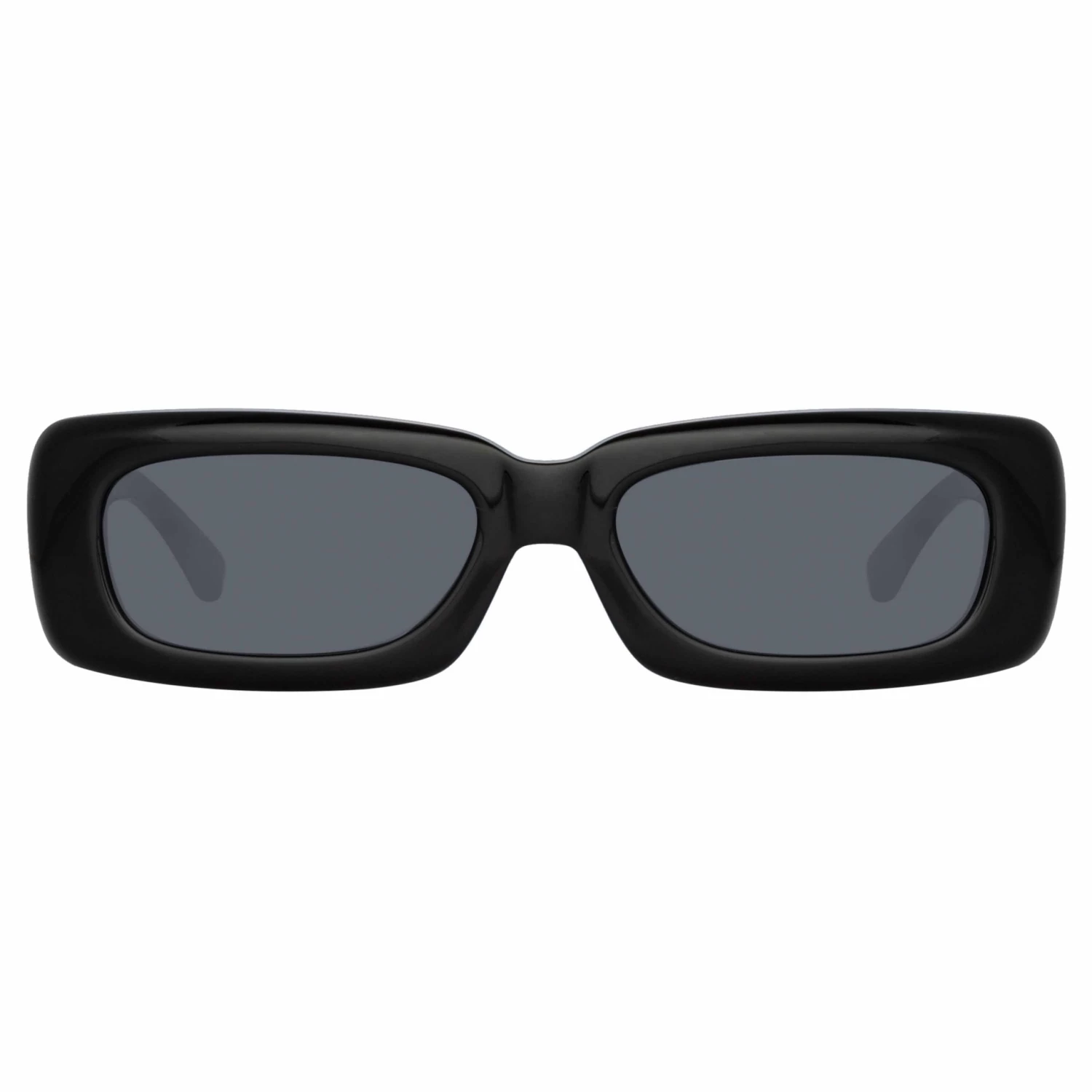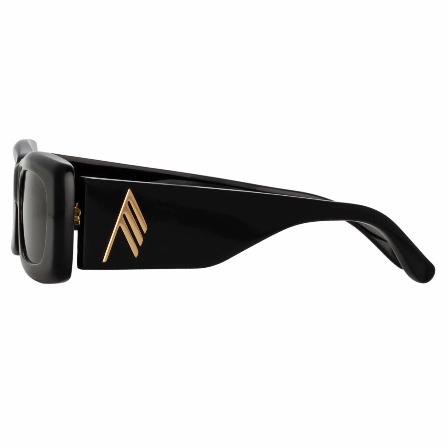 Introducing the Mini Marfa – little sister to the Marfa frame from our collaboration with Milan fashion house The Attico. The slim rectangular sunglasses are hewn from recycled black acetate, beveled and highly polished for a luxurious soft edge finish. Wide temples are detailed with gold branding and solid grey nylon lenses offer 100% UV protection. Sculpted nose pads and temple tips provide comfort to the wearer.
